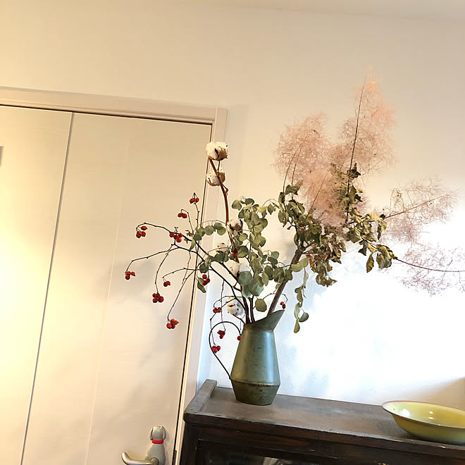 コットンフラワー 鈴バラの実 ユーカリ スモークツリー ドライフラワー などのインテリア実例 19 03 12 13 23 37 Roomclip ルームクリップ